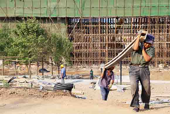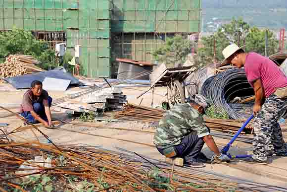 9日上午9點(diǎn)多,記者來(lái)到南山公園施工現(xiàn)場(chǎng)。此時(shí)的氣溫已經(jīng)很高了,加上烈日的暴曬,讓人心里直發(fā)慌。站在山下環(huán)顧四周,漫天黃土伴隨熱浪陣陣襲來(lái),躲不開(kāi)也逃不掉。然而,忙碌的建設(shè)者則“無(wú)動(dòng)于衷”,該搬磚的搬磚,該砌墻的砌墻,渾身的汗水夾雜著黃土。
